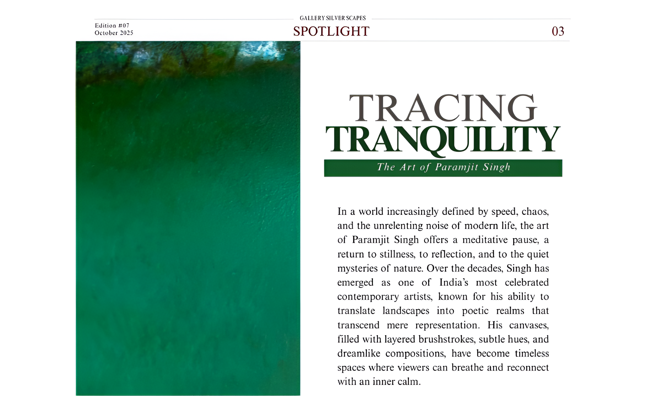 Paramjit Singh’s work embodies a contemplative engagement with the natural world, inviting viewers into serene landscapes suffused with a subtle lyricism and timeless stillness. His paintings evoke a delicate interplay between memory, imagination, and nature, crafting spaces where the boundary between the real and the dreamlike gently dissolves. This quiet, meditative quality allows his landscapes to transcend mere representation, becoming poetic realms that invite reflection and immersion.