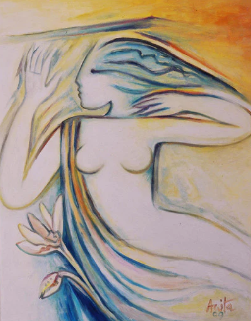 More than a figurative portrayal, this painting is a visual ode to the archetypal feminine, not as a passive subject of beauty, but as a vital, animating presence within the world’s unfolding narrative. The composition elevates the female form to the realm of myth and metaphysics, celebrating its strength, its fluidity, and its unbreakable ties to the rhythms of earth and cosmos. In reimagining womanhood through a lens of spiritual agency and ecological unity, the artwork speaks to both timeless themes and urgent contemporary conversations. It offers a meditation on the power of feminine energy as a sustaining, transformative force, one that persists, adapts, and endures with quiet, luminous grace.