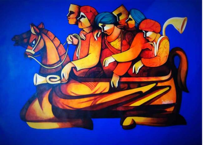 The Journey is more than a literal depiction; it is a metaphor for movement, be it personal, historical, or spiritual. It invites viewers to reflect on the collective paths we take, the stories we carry, and the identities we forge in motion. Through his signature blend of vibrant abstraction and narrative depth, Nawal Kishore transforms a simple ride into an evocative visual odyssey.