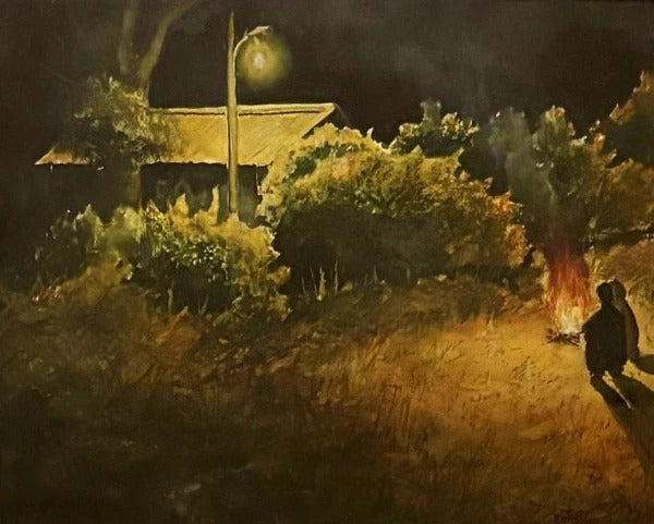 Satwalekar’s approach resists overt drama, favoring a subdued lyricism rooted in observation and mood. Nocturnal Landscape does not aim to tell a story in a conventional sense, but rather invites the viewer into a contemplative moment suspended in time. It is a study in solitude, in light as quiet presence, and in the understated beauty of night as a space of reflection.