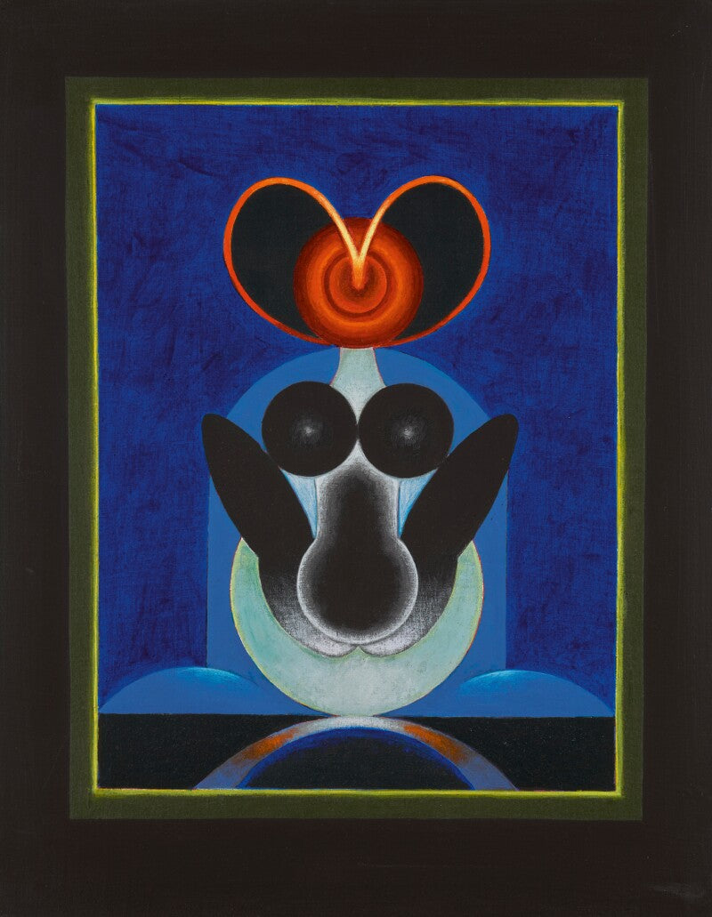 G. R. Santosh’s artwork unfolds as a contemplative visual cosmology, where form, colour, and spiritual inquiry converge into a singular meditative space. Rooted in his deep engagement with Tantric philosophy, the composition resists narrative literalism and instead operates as a symbolic diagram, an inner landscape rather than an external scene. The central vertical axis anchors the work, suggesting ascent, balance, and the alignment of cosmic energies, a recurring concern in Santosh’s mature practice.