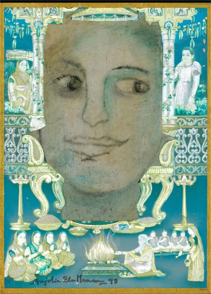 This artwork exemplifies Anjolie Ela Menon’s adept fusion of portraiture, symbolism, and cultural narrative. It stands as a compelling meditation on identity, spirituality, and the enduring resonance of ritual, articulated through a masterful blend of technique and iconography. The work invites sustained reflection on the intersection of personal expression and collective tradition, marking a significant contribution to contemporary Indian art.
